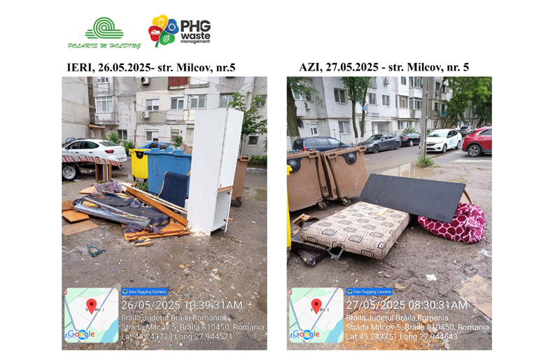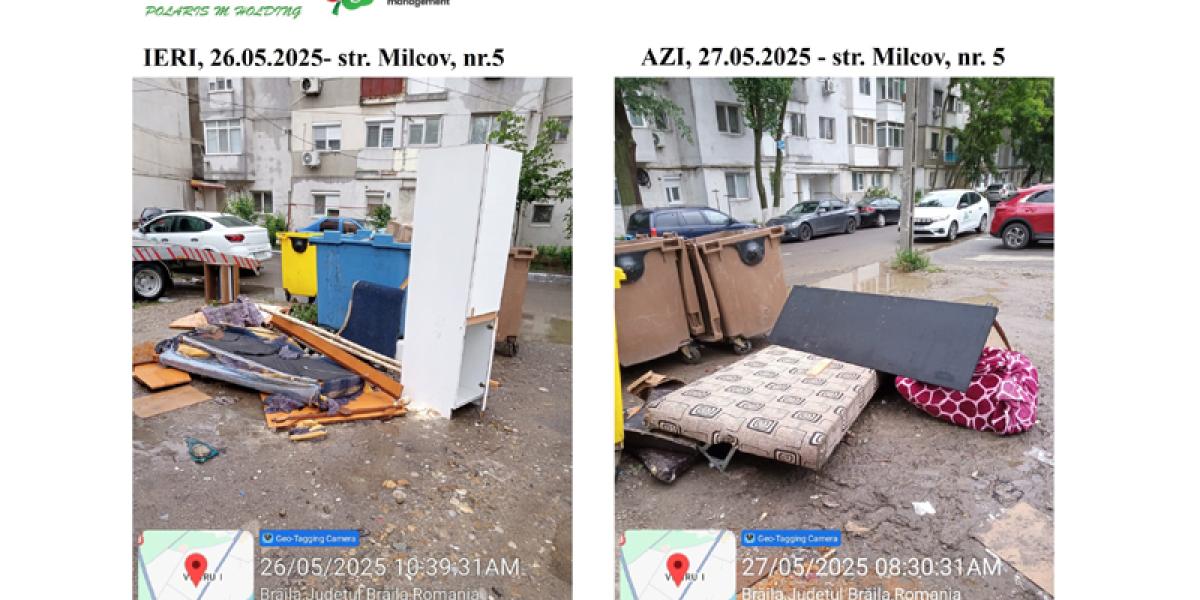 ”Colectăm GRATUIT deșeurile voluminoase (mobilier, saltele etc.) trimestrial în toate localitățile din județul Brăila. Există soluții civilizate și legale pentru a vă debarasa de obiectele inutile din gospodării. Este responsabilitatea fiecăruia dintre noi să contribuie la curățenia și întreținerea orașului nostru. Nu putem lupta singuri cu nepăsarea! Facem apel la bun-simț și implicare: ne dorim să păstrăm Brăila curată! Sesizați astfel de cazuri, respectați programul de colectare și NU abandonați deșeuri pe domeniul public!”, precizează firma ”Polaris”, după incidentul de pe strada Milcov de la începutul acestei săptămâni.