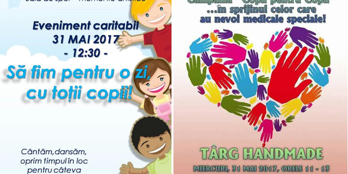Astfel, la Liceul “Perpessicius”, începând cu ora 12.30, sunteţi invitaţi la Târgul de jucării handmade “Să fim pentru o zi, cu toţii copii”. Pe lângă produsele expuse spre vânzare, în sala de sport a liceului, vizitatorii se vor putea bucura de un spectacol de muzică şi dans pregătit de elevi. Fondurile obţinute la finalul zilei vor fi donate lui Cristian Filip, adolescentul diagnosticat cu o formă rară de cancer.