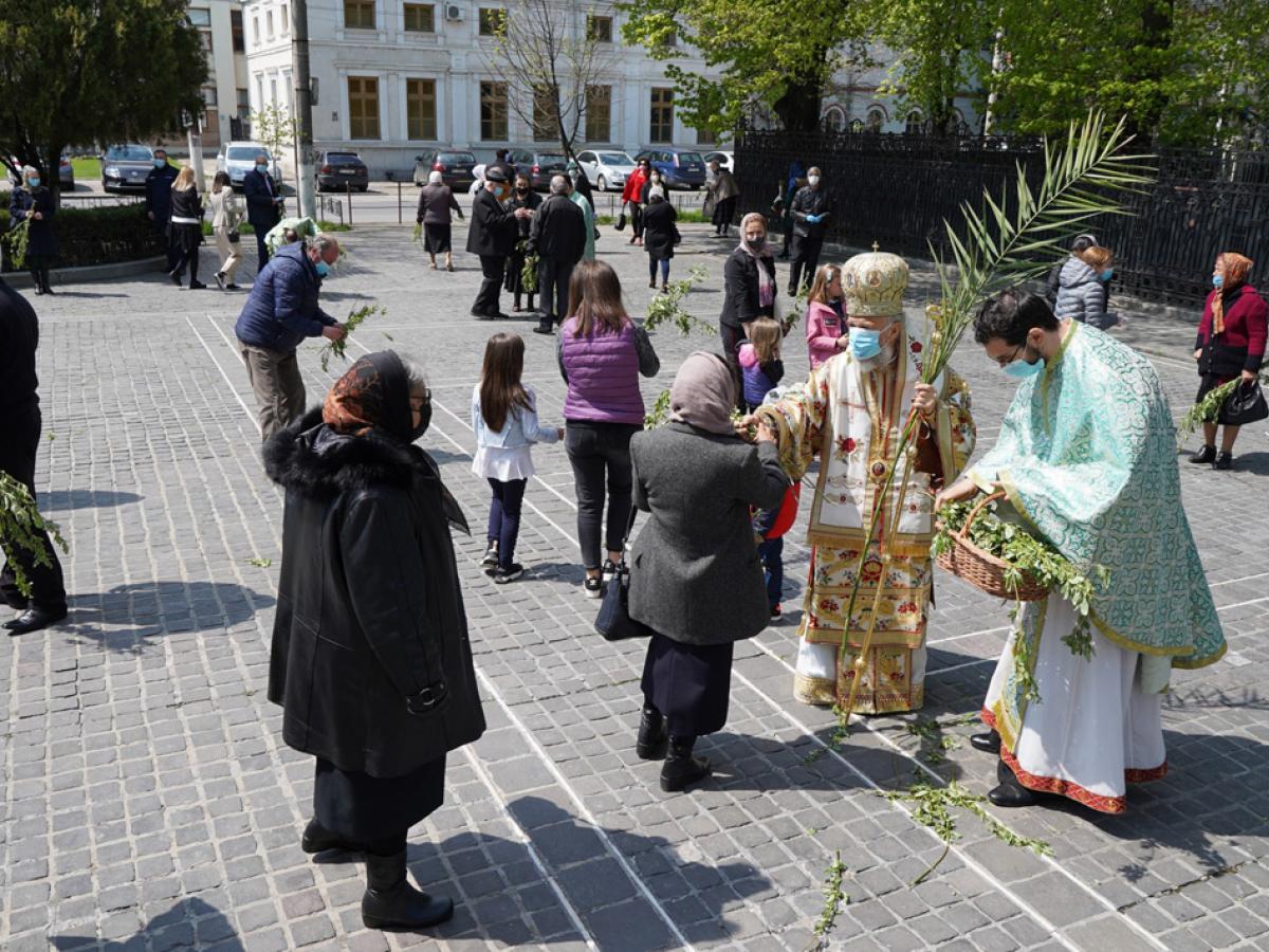 La momentul cuvenit, mulți credincioși și copii prezenți la slujbă au fost împărtășiți cu Sfintele Taine, iar la sfârșitul slujbei, ierarhul a rostit rugăciunea de binecuvântare a stâlpărilor care, ulterior, au fost oferite credincioșilor pe esplanada Catedralei. Ramuri verzi de salcie au fost împărțite credincioșilor în toate parohiile de la Dunărea de Jos.