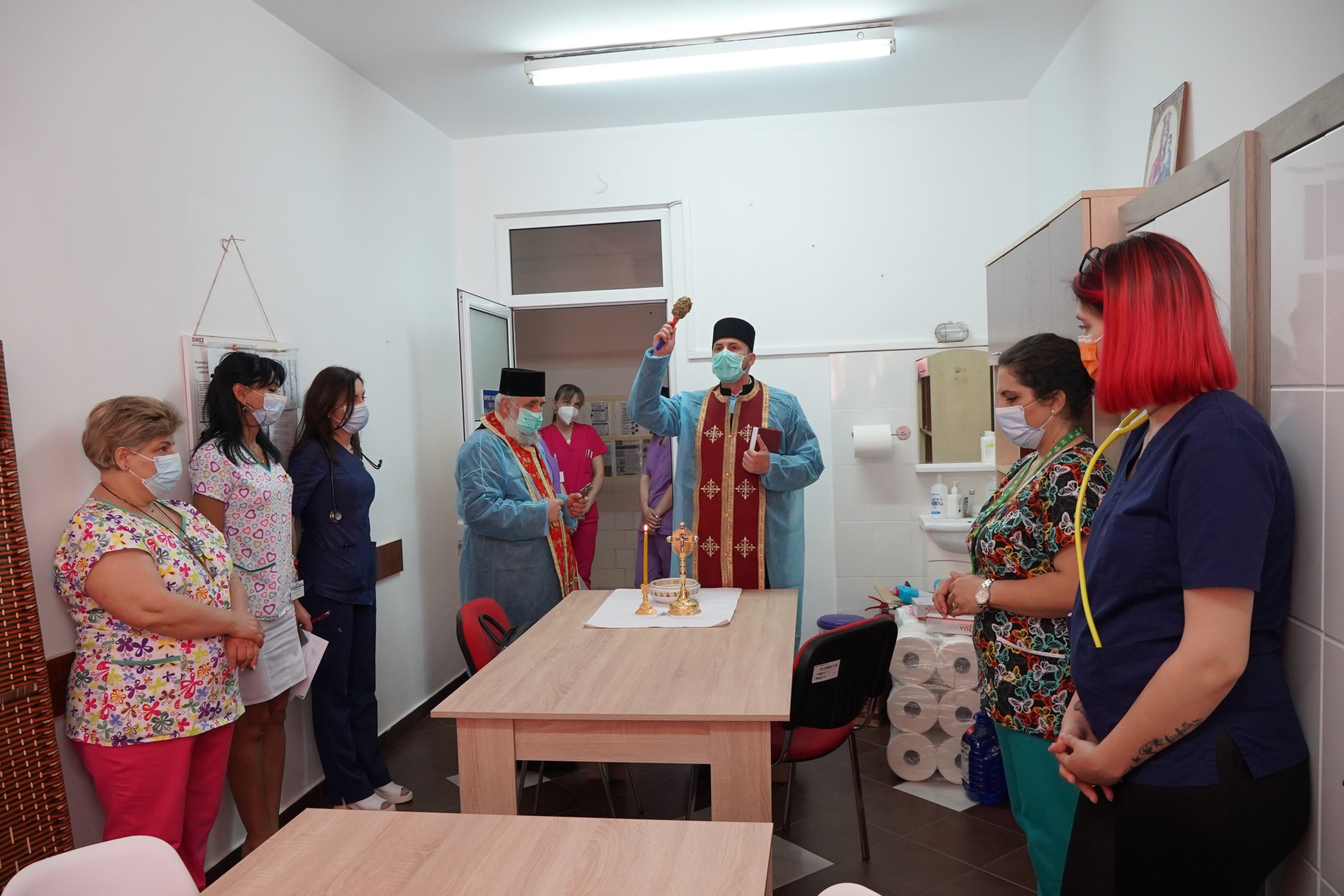 "În urma discuţilor avute cu medici din cadrul Spitalului Judeţean de Urgenţă Brăila, preotul paroh Victor Ţugui, de la Parohia "Sfinţii Arhangheli Mihail şi Gavriil", a reuşit să achiziţioneze mai multe piese de mobilier necesare amenajării camerei de gardă din cadrul Secţiei Medicală 1 a acestei unităţi spitaliceşti. Prima etapă a activităţii a constat în achiziţionarea, transportul şi montarea mobilierului - trei dulapuri, două mese cu cinci scaune, o comodă cu sertare, o canapea, două paravane despărţitoare şi un frigider", a precizat, în cadrul unui comunicat, părintele Rareş Bucur, de la Centrul Eparhial.