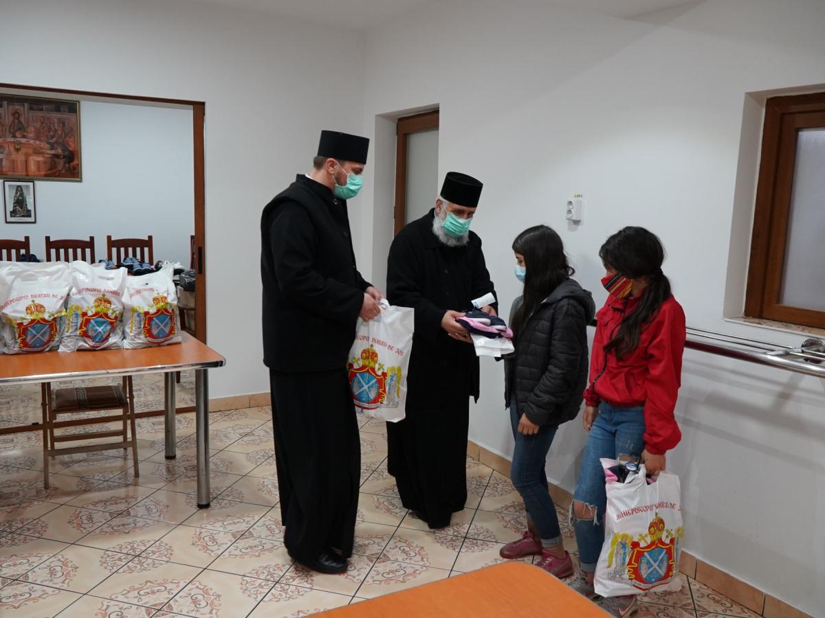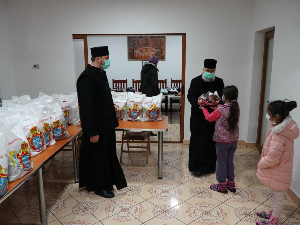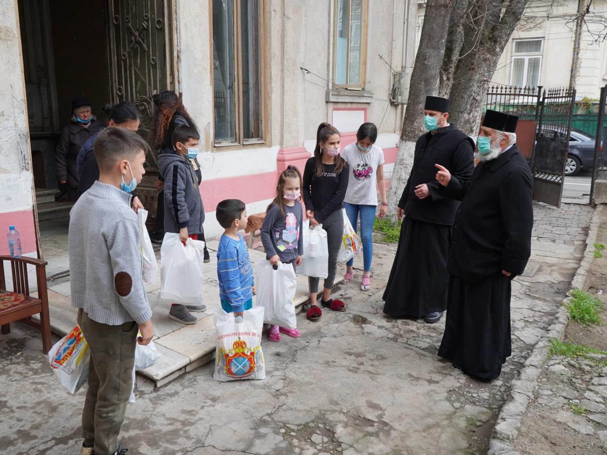 În aceeaşi zi, preoţii şi angajaţii Centrului social "Vasile cel Mare", din cadrul Parohiei "Sf. Arhangheli", au oferit alimente, îmbrăcăminte, încălţăminte şi alte daruri celor 30 de copii asistaţi ai centrului, care provin din 11 familii cu posibilităţi materiale reduse, monoparentale, unii dintre ei având şi grave probleme de sănătate. Ajutoarele pregătite de angajaţii şi de voluntarii cantinei sociale au fost împărţite copiilor fie la sediul cantinei, fie acasă (la cei aflaţi în imposibilitatea de a se deplasa), cu respectarea normelor de protecţie împotriva Covid-19. La finele acţiunii, pr. paroh Victor Ţugui şi pr. Ciprian Duca, coordonatorul Centrului social, au vizitat cinci vârstnici, pentru a le oferi şi lor pachete cu alimente.