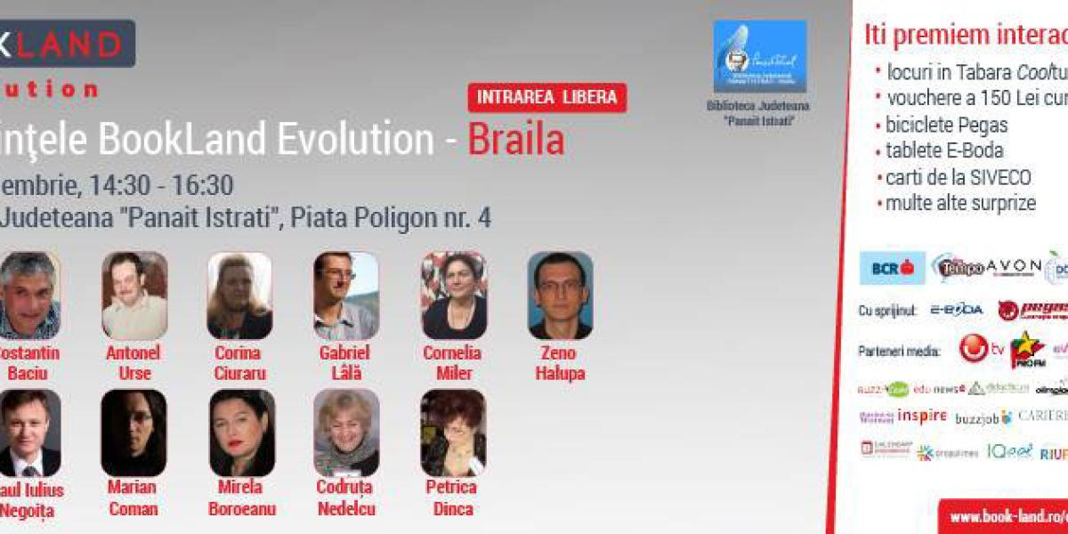 Luni, 7 noiembrie 2016, la Biblioteca Judeţeană “Panait Istrati” îşi deschide porţile pentru tinerii din Brăila cea de a treia ediţie a Conferinţelor BookLand Evolution, sesiunea toamnă-iarnă. De luni până vineri, în perioada 7-11 noiembrie, în intervalul orar 14:30 – 16:30, vor urca pe scenă câte 4 profesionişti, care îi vor încuraja şi motiva prin exemplul personal pe cei prezenţi în Sala de lectură a Bibliotecii să facă alegerile potrivite, povestindu-le despre provocările care-i aşteaptă.