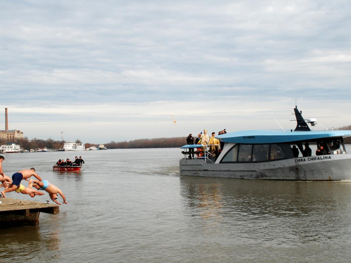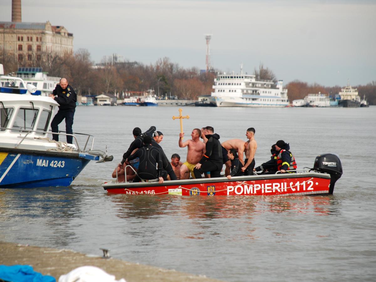 * sâmbătă, pe o vreme nefiresc de caldă, ierarhul Dunării de Jos a oficiat slujba de sfințire a Agheasmei Mari și a dat startul concursului de Bobotează * Daniel Nichițelea, de 34 de ani, a reușit să prindă Crucea din apele Dunării, pentru a patra oară, fiind răsplătit de municipalitate, dar și de ierarhul de la Galați * șapte brăileni au participat la concursul de Bobotează de anul acesta
