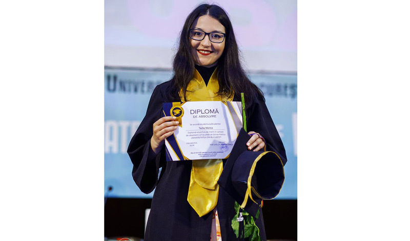 O brăileancă a fost desemnată şefa de promoţie a Facultăţii de Ştiinţe Politice din cadrul Universităţii din Bucureşti. Monica Gabriela Tache a absolvit cu media 10 specializarea Ştiinţe Politice în Limba Franceză, devenind probabil prima studentă din Brăila care obţine această titulatură. Iar performanţa ei nu este deloc întâmplătoare, ea fiind şefă de promoţie şi în gimnaziu şi liceu. Despre Monica aţi putut citi şi în paginile cotidianului “Obiectiv” în iulie 2016, anul în care devenea absolventa cu cea mai mare medie la BAC din judeţul Brăila. Iar dacă în urmă cu trei ani Monica păşea timidă în redacţia noastră, când am reîntâlnit-o zilele trecute am descoperit o tânără încrezătoare şi curajoasă, o tânără liberă care încă visează să schimbe lumea. Însă, dacă în 2016 schimbarea însemna să plece din ţară, acum Monica vrea să rămână aici şi să demonstreze că şi România poate fi “o ţară ca afară”.