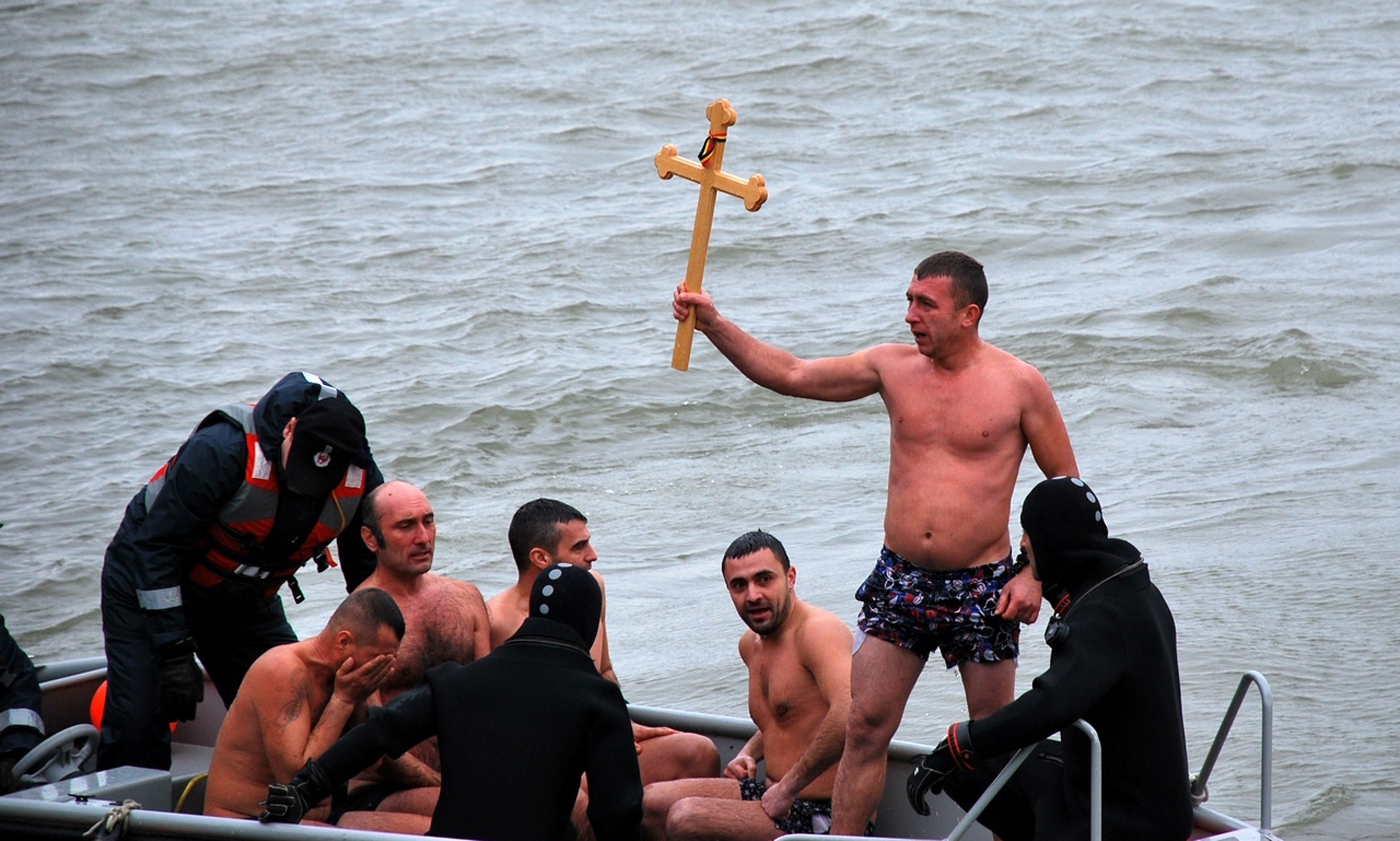 După cuvintele de suflet adresate brăilenilor, Părintele Arhiepiscop Casian a purces către Dunăre, urmat de preoţi şi de oficialităţi, ca să dea startul mult-aşteptatului concurs de Bobotează. Privirile tuturor au rămas aţintite asupra temerarilor care, ignorând frigul - vântul sufla în rafale, iar ei erau doar în slip! - au plonjat în apele fluviului, de pe ambarcaţiunea Marinei Fluviale, ca să prindă Crucea aruncată de ierarh. Cinci brăileni s-au înscris la concursul de Bobotează de anul acesta: Daniel Nichiţelea, Ionel-Ionuţ Ionescu, Răzvan Rahel, Mădălin-Marcel Mavrodin şi Viorel Stan (ultimul fiind înscris chiar ieri dimineaţă, înaintea evenimentului). Majoritatea celor înscrişi sunt veterani ai tradiţionalei confruntări de Bobotează. Câştigător a fost însă Daniel Nichiţelea, în vârstă de 30 de ani, muncitor în construcţii.