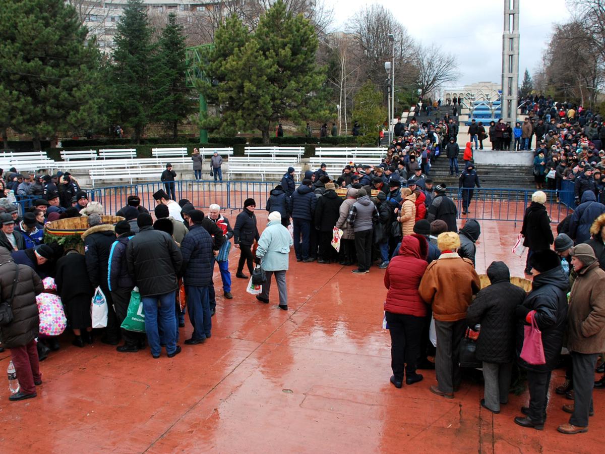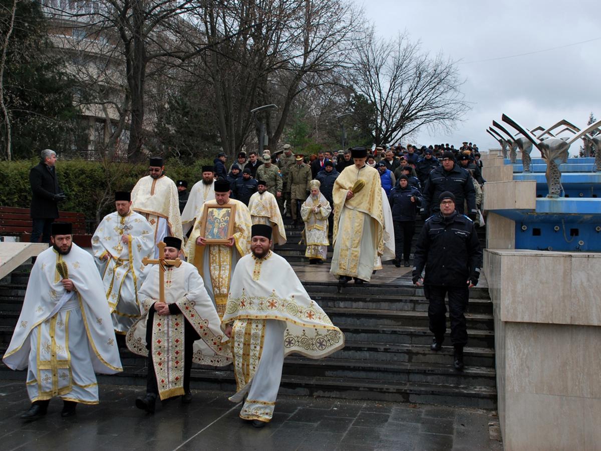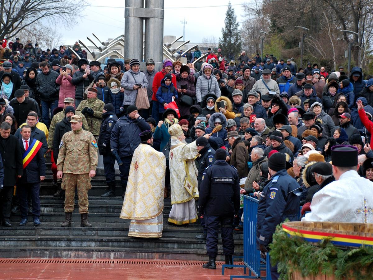 Devenită tradiţie, sărbătoarea Naşterii Domnului a început cu Sfânta Liturghie Arhierească, oficiată la Catedrala “Naşterea Domnului” din Bariera Călăraşilor, de către Părintele Arhiepiscop Casian, împreună cu un sobor de preoţi şi diaconi. Concomitent, în toate bisericile ortodoxe din oraş şi din judeţ preoţii slujitori au ţinut slujbe şi s-au rugat pentru binecuvântarea şi pentru binele credincioşilor. A urmat procesiunea de Bobotează, având în frunte Crucea şi Icoana Botezului Domnului, precum şi Fanfara Garnizoanei Brăila. Părintele Arhiepiscop i-a botezat pe credincioşi şi i-a binecuvântat pe tot traseul, iar la sosirea pe Faleză s-a intonat troparul şi imnul sărbătorii. Preoţii, laolaltă cu ierarhul Dunării de Jos, au cântat “În Iordan botezându-Te, Tu, Doamne”, după care Părintele Arhiepiscop a dat citire proorociei lui Isaia, ascultată cu reverenţă de toţi cei prezenţi. Sute de brăileni, tineri şi bătrâni, bărbaţi şi femei, au asistat la slujba Agheazmei Mari, sfidând vântul care începuse să bată cu putere. De faţă s-au aflat autorităţile civile şi militare ale urbei, în frunte cu primarul Marian Dragomir, preşedintele CJ Francisk Chiriac, prefectul Cătălin Boboc şi comandantul garnizoanei Brăila, generalul de brigadă Vasile Ionescu. Nu mai puţin de cinci butoaie pline cu agheazmă şi străjuite de tot atâţia preoţi brăileni, fuseseră pregătite din vreme, pentru a fi sfinţite de Părintele Arhiepiscop Casian.