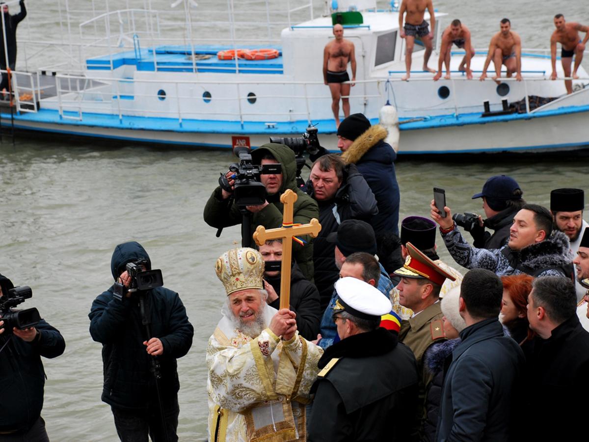 • în sfânta zi a Bobotezei, Părintele Arhiepiscop Casian a sfinţit apele Dunării şi s-a rugat pentru binele brăilenilor • ierarhul a săvârşit Sfânta Liturghie la Catedrala “Naşterea Domnului” şi a condus procesiunea pe Calea Călăraşilor, cu icoana Bobotezei în frunte • Fanfara Militară, preoţii, laolaltă cu ierarhul, au cântat imnul Bobotezei, “În Iordan botezându-Te, Tu, Doamne” • sărbătoarea de ieri a culminat cu tradiţionalul concurs pentru prinderea Crucii, aruncată în fluviu de Părintele Arhiepiscop Casian • Daniel Nichiţelea, care a mai câştigat de două ori Crucea, este campionul Bobotezei de anul acesta • “Particip de 10 ani la concursul de Bobotează şi am prins Crucea de trei ori până acum”, ne-a mărturisit Daniel, muncitor în construcţii