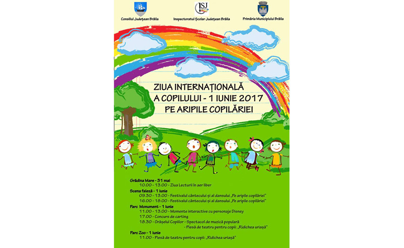 De 1 Iunie, copiii vor fi răsfăţaţi cu două zile de spectacole. Piese de teatru, festival de muzică şi dans sau concursuri, sunt doar câteva dintre surprizele pregătite de autorităţi pentru cei mici. Evenimentele sunt organizate de Primăria Municipiului Brăila, Inspectoratul Şcolar Judeţean (ISJ) Brăila şi Consiliul Judeţean Brăila.