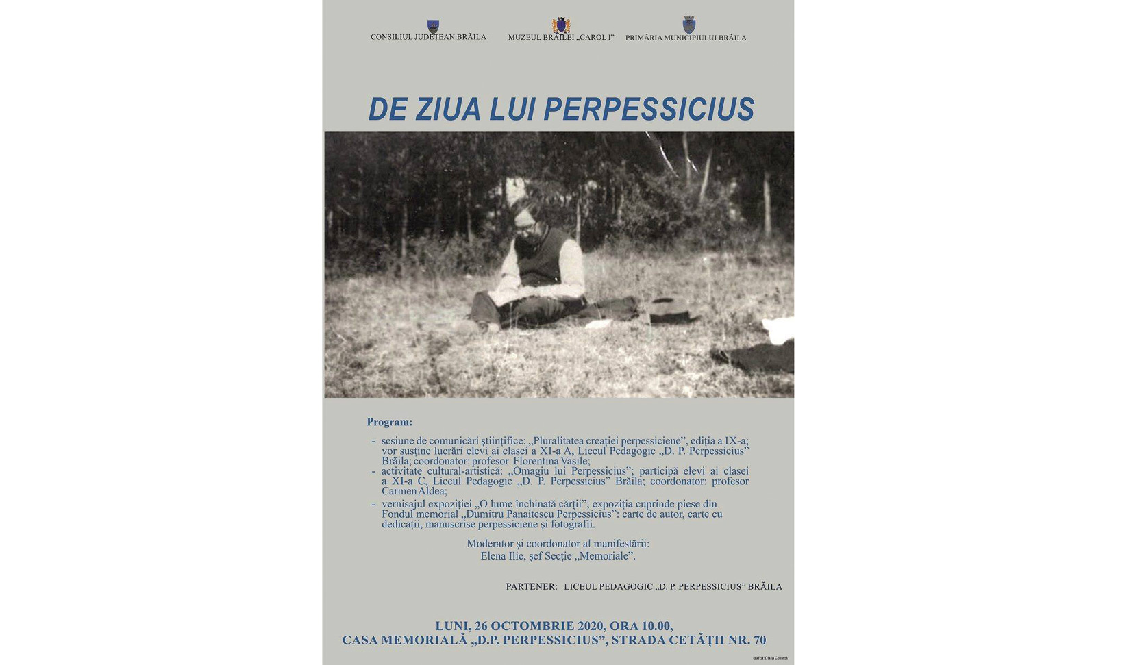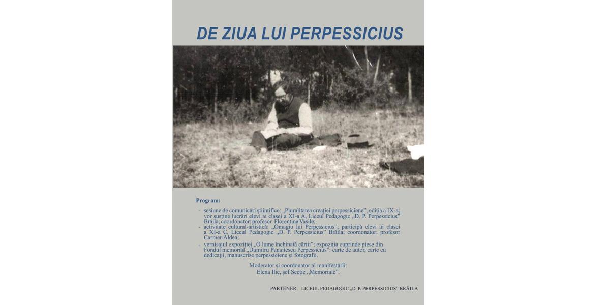 - sesiune de comunicări ştiinţifice: „Pluralitatea creaţiei perpessiciene”, ediţia a IX-a; vor susţine lucrări elevi ai clasei a XI-a A, Liceul Pedagogic „D. P. Perpessicius” Brăila coordonaţi de profesor Florentina Vasile;