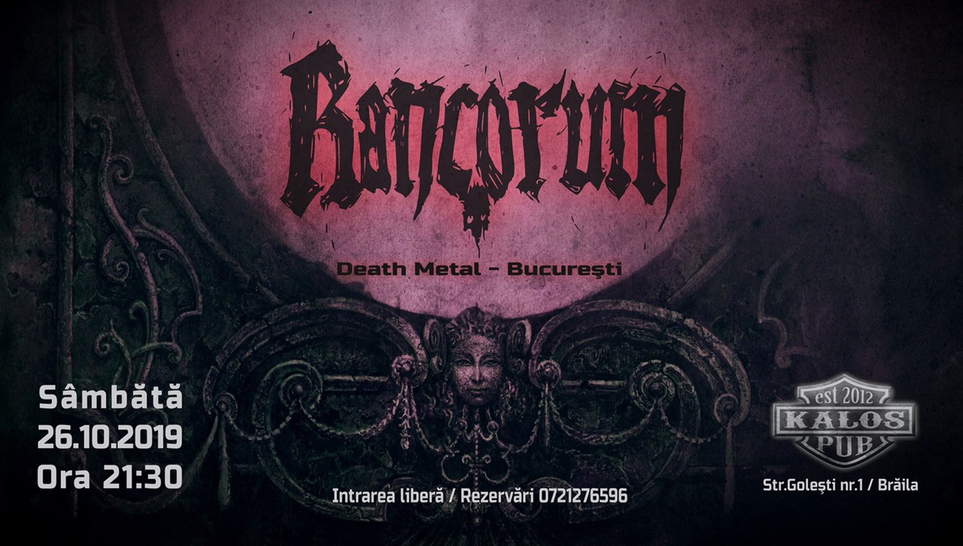 • trupa bucureşteană de death metal, Rancorum, va susţine un show în premieră la Brăila • grupul va urca pe scena din Kalos Pub, sâmbătă, 26 octombrie, în intervalul orar 21:00 - 23:00
