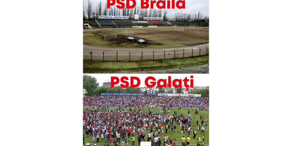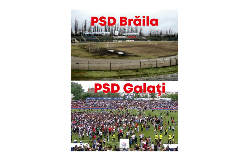 În încercarea de a-și întări acuzațiile, parlamentarul a transmis două fotografii care înfățișează stadionul de fotbal din Brăila și pe cel din Galați.