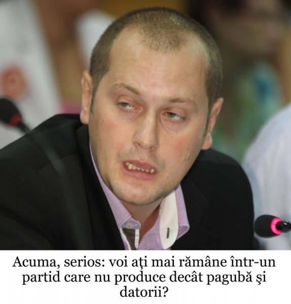Pe de altă parte, deputatul Petrea pare să aibă şi un moment de sinceritate involuntară, atunci când spune că părăseşte UNPR pentru că nu vrea să fie părtaş la rezultatele dezastruoase pe care partidul le va înregistra la alegerile locale. Altfel spus, Petrea recunoaşte că el nu mai vrea să facă parte dintr-o echipă necâştigătoare, cu care nu are certitudinea că va mai prinde un fotoliu de parlamentar, din toamnă încolo. Şi-atunci, ce s-a gândit deputatul Petrea? Păi, mai întâi a aruncat cu rahat în tanti Marioara, acuzând-o că vrea să plece la un alt partid. Auzi, Petrea spune de Marioara că vrea să plece, în timp ce anunţă că tocmai a demisionat dintr-o funcţie importantă din partid! În realitate, că doar nu e un secret pentru nimeni, deputatul Petrea vrea să plece la PSD, poate-poate prinde şi el un loc pe listă, la toamnă. Problema este însă că la PSD este mare aglomeraţie pe liste şi nu prea mai are loc nimeni, mai ales venit din afară. Însă deputatul UNPR Dorin Silviu Petrea este în stare de orice sacrificii pentru a se cuibări în lista PSD, inclusiv să slăbească până la os, ca să încapă pe un loc eligibil.