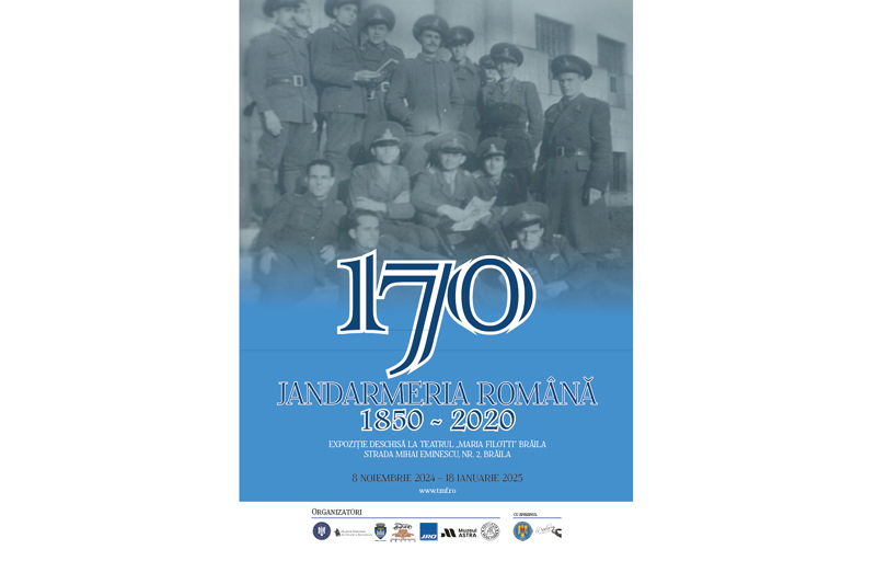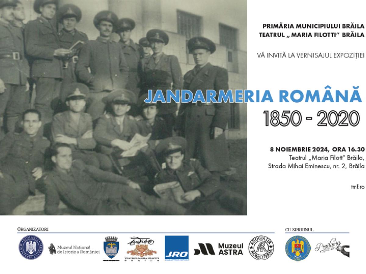 Muzeul Național de Istorie a României, în parteneriat cu Complexul Național Muzeal ASTRA din Sibiu, Inspectoratul General al Jandarmeriei Române și Teatrul ”Maria Filotti” Brăila, anunță deschiderea expoziției itinerante „Jandarmeria Română 1850 - 2020” la sediul prestigioasei instituții de spectacol situată pe strada Mihai Eminescu nr. 2 din municipiul Brăila. Vernisajul va avea loc vineri, 8 noiembrie 2024, zi în care Biserica Ortodoxă Română îi cinstește pe Sfinții Arhangheli Mihail și Gavril, patronii spirituali ai Jandarmeriei Române. Pasionații de istorie militară sunt așteptați să participe la eveniment într-un număr cât mai mare începând cu ora 16.30 în Holul Monumental al Teatrului ”Maria Filotti”.