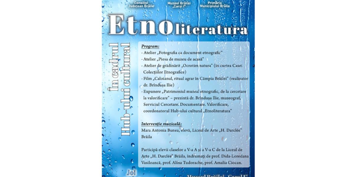 • joi, 8 mai, de la ora 10:00, are loc o nouă întâlnire în cadrul Hub-ului cultural „Etnoliteratura” • programul zilei include trei ateliere, o expunere despre patrimoniul muzeal etnografic și un film: „Caloianul, ritual agrar în Câmpia Brăilei”