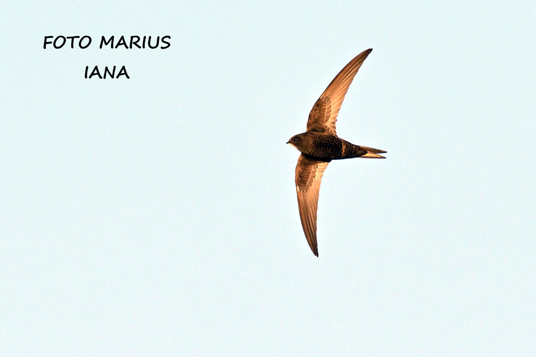 Descriere: Specie de pasăre de talie mică, care este observată aproape exclusiv în zbor, având un aspect general caracteristic. Prezintă o culoare neagră-maronie relativ uniformă pe tot corpul, cu excepția bărbiei de culoare albă și a remigelor interioare care sunt de culoare negră, dar de nuanță mai deschisă. Aripile sunt lungi, ascuțite și sub formă de seceră, iar coada este puternic bifurcată, dar relativ scurtă.