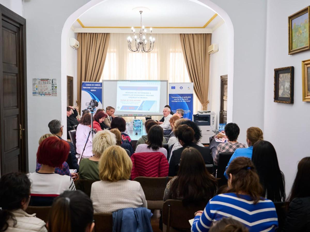 „Sesiune de informare a agenților economici privind legislația muncii”, organizată de Camera de Comerț, Industrie și Agricultură (CCIA) Brăila, în colaborare cu reprezentanții ITM, AOFM și ai Organismului Intermediar Regional (OIR) PECU Regiunea SUD-EST, la sediul CCIA, cu participarea agenților economici din municipiu și județ.