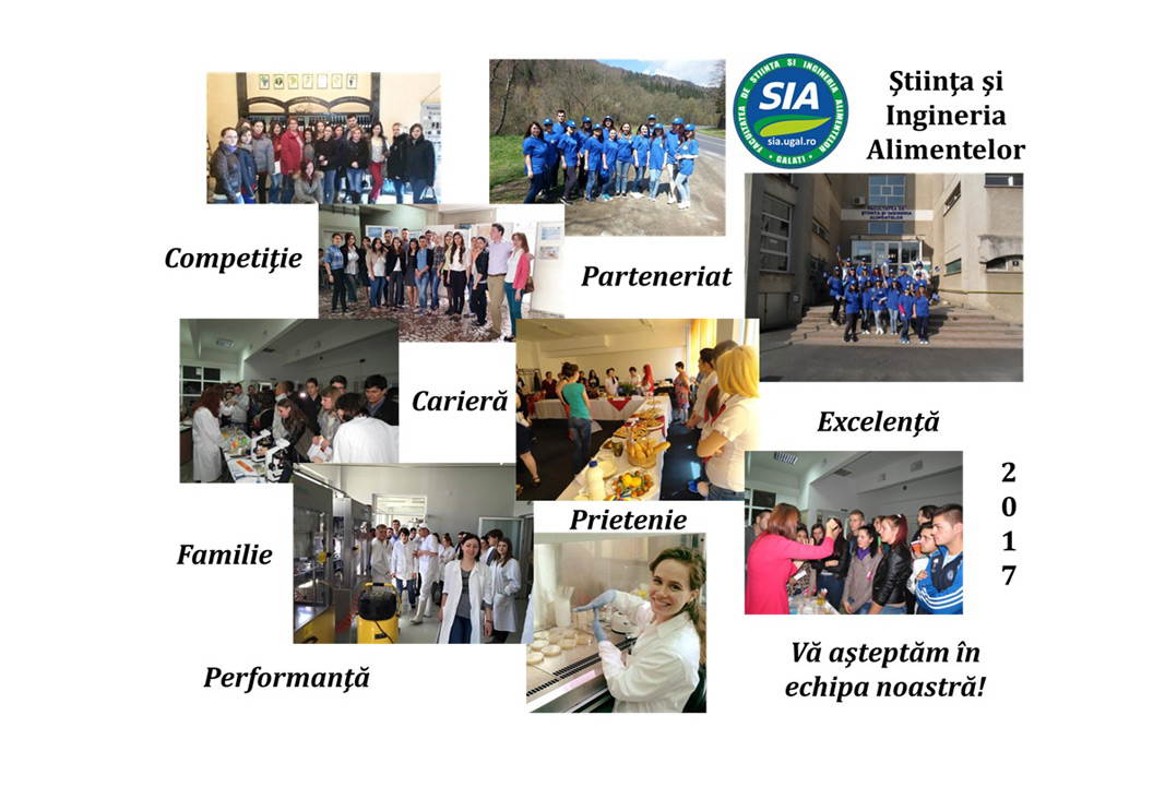 Facultatea de Ştiinţa şi Ingineria Alimentelor (SIA) din Galaţi poartă emblema tradiţiei, fiind cea mai veche facultate în domeniu din ţara noastră, dar totodată şi a performanţei, aliniindu-se astăzi în randul celor mai moderne, cu dotări şi corp profesoral de renume.