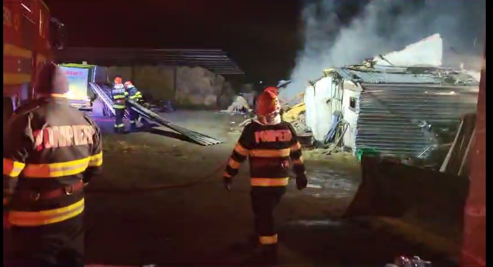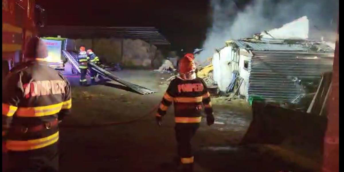 * un bărbat de 33 de ani a suferit arsuri de gradul 1 și 2 * incendiul a pornit de la un scurtcircuit electric * intervenția pompierilor a durat circa 7 ore