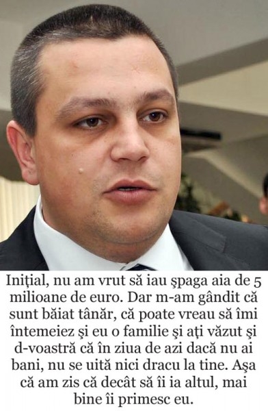 Şi cum Diacomatu nu a îndrăznit să conteste spusele lui Cocoş, înseamnă că denunţul este conform cu realitatea, că fostul candidat la preşedinţia CJ Brăila chiar a luat 5 milioane de euro şpagă pentru a intermedia retrocedarea cu cântec a unui teren situat în buricul Bucureştiului.