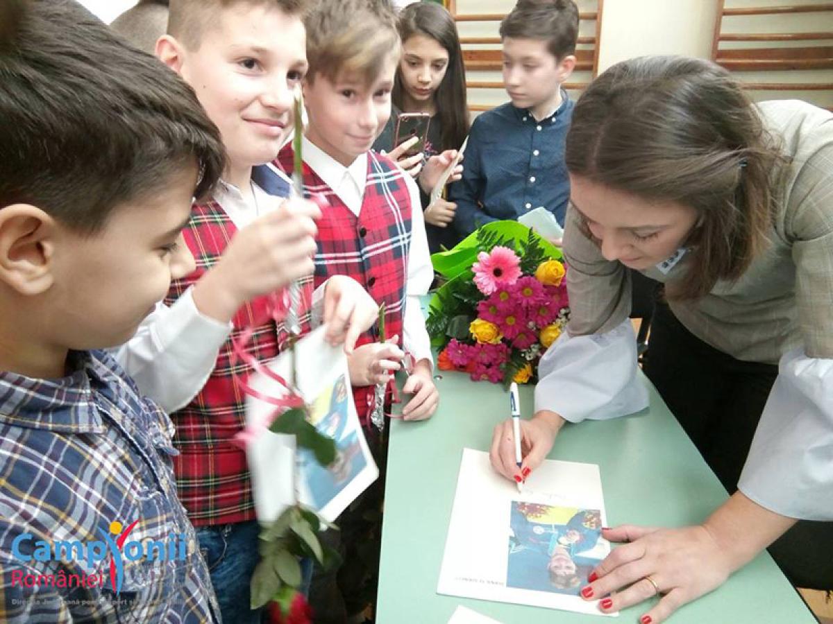 La finalul evenimentului care a avut loc la şcoala “I.L. Caragiale” elevii au dialogat cu campioana olimpică. Aceasta i-a îndemnat în mai multe rânduri pe copii să facă tot mai mult sport de plăcere, iar cei dispuşi să muncească, să se orienteze către sportul de performanţă.