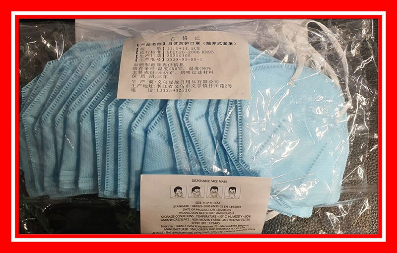 Toate trei măştile amintite mai sus, aflate acum pe "lista neagră" a autorităţilor europene, au ca ţară de origine China. Ele au fost ideintificate, mai întâi, în Belgia - care a emis alerte de tip "grav" - şi în Estonia. Iată şi denumirile ultimelor trei măşti de filtru de particule neconforme, identificate pe piaţa UE: "Folding KN95", "Disposable Face Mask" şi "KN95 Folding Protective Mask".