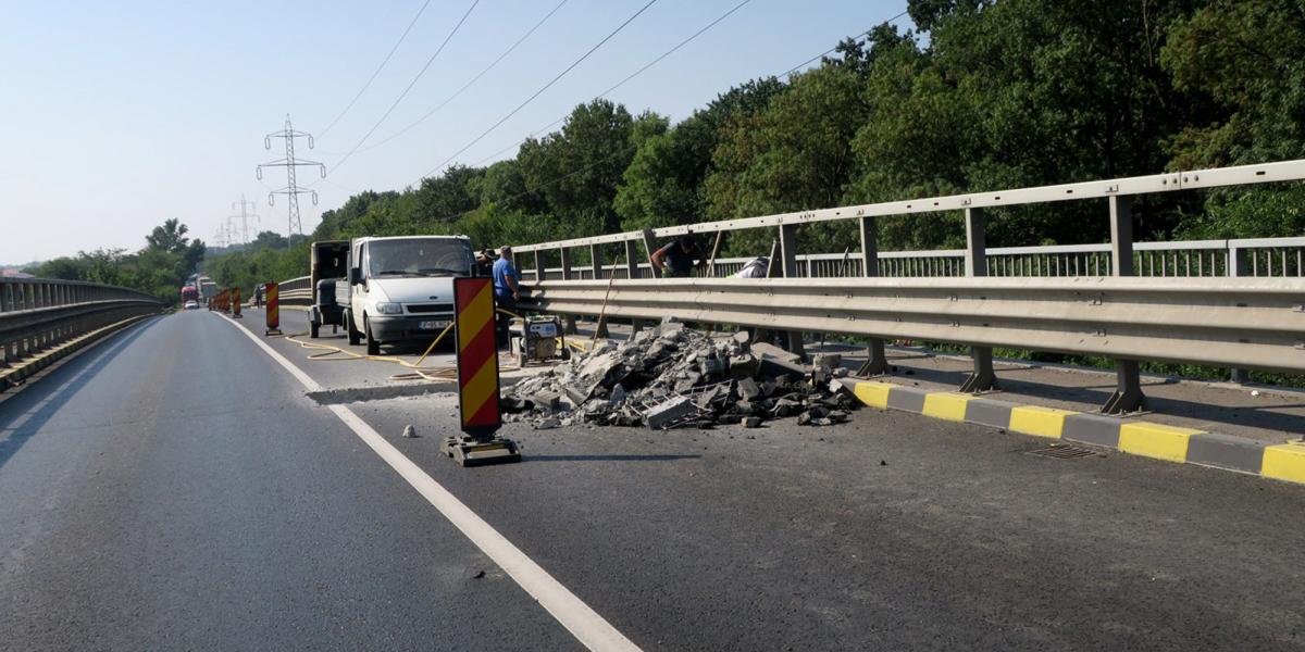 • lucrările de reabilitare a podului ar fi trebuit să fie gata în luna aprilie a anului în curs • abia în luna iunie s-a finalizat partea carosabilă şi s-au ridicat restricţiile de circulaţie • între timp, constructorul şi-a adus aminte că mai trebuie să mai monteze dispozitivele de acoperire a rosturilor • aceste lucrări au termen de finalizare 31 august a.c.