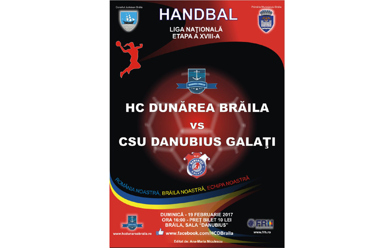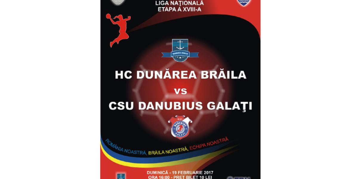 Duminică, 19 februarie, de la ora 16.00, HC Dunărea va juca în Sala Polivalentă cu Danubius Galaţi, meci contând pentru etapa a 18-a a Ligii Naţionale de handbal feminin. Iar intrarea spectatorilor va fi permisă începând cu ora 14.30. În etapa precedentă HC Dunărea a pierdut la scor, 33-21, la CSM Bucureşti în timp ce Danubius a realizat surpriza rundei, învingând-o cu 27-26 pe CSM Roman după ce, în minutul 53 formaţia vizitatoare conducea cu 26-24. Dispută de tradiţie în sportul românesc, cel puţin teoretic, jocul de duminică este deschis oricărui rezultat. Ţinând însă cont de valoarea lotului de care dispune, formaţia brăileană care va beneficia şi de aportul suporterilor, porneşte cu prima şansă. În partida tur HC Dunărea a câştigat la limită, 25-24, la Galaţi, principala marcatoare a formaţiei brăilene a fost Orşivschi cu 8 goluri marcate. Tătar, Lipară şi Pârvuţ au înscris câte 4 goluri fiecare, iar de la Danubius principala realizatoare a fost Elena Lavrinikj cu 7 reuşite.
