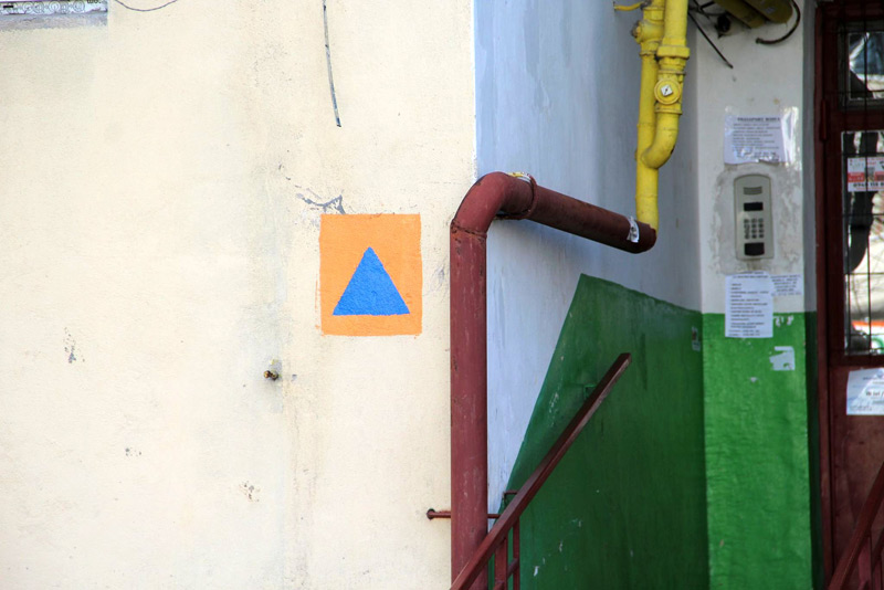 Semnul distinctiv național al protecției civile este identic celui prevăzut de Protocolul adițional nr. I din 10 iunie 1977 la convențiile de la Geneva din 12 august 1949 privind protecția victimelor conflictelor armate internaționale și constă într-un triunghi echilateral albastru pe fond portocaliu.
