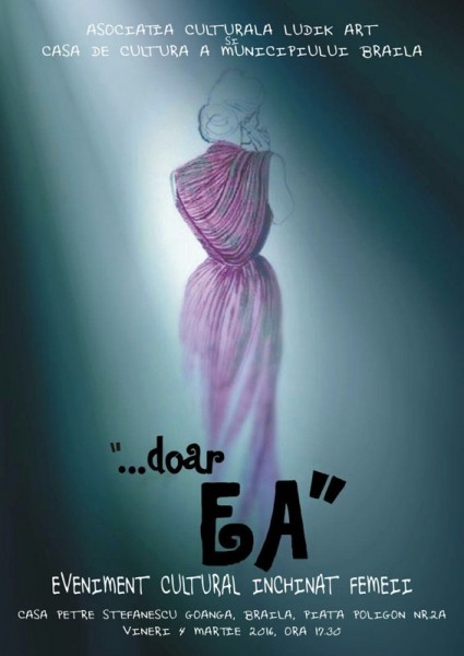 Vineri, 4 martie 2016, de la ora 17.30, la Casa Memorială Petre Ştefănescu-Goangă are loc manifestarea culturală ...doar EA, eveniment dedicat femeii, simbol al dragostei, întelepciunii şi purităţii.