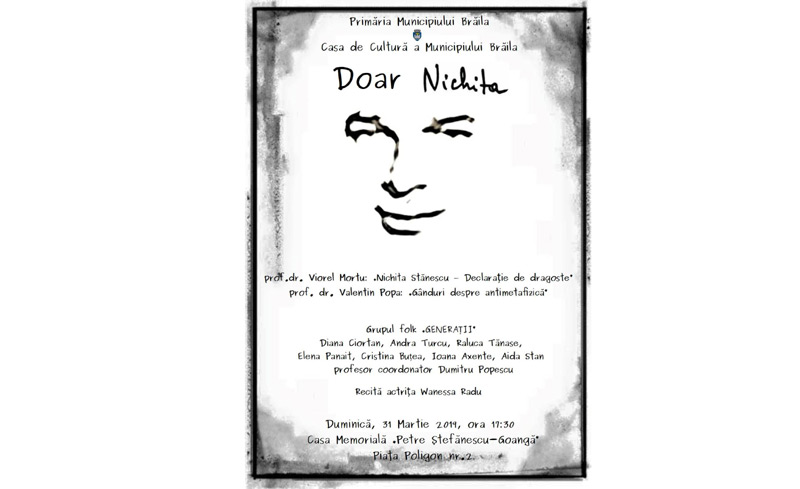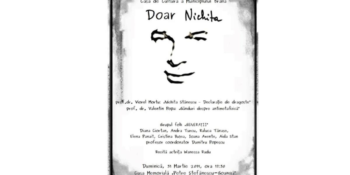 Manifestarea, intitulată Doar Nichita, va avea loc la Casa Memorială Petre Ştefănescu-Goangă, începând cu ora 17:30.