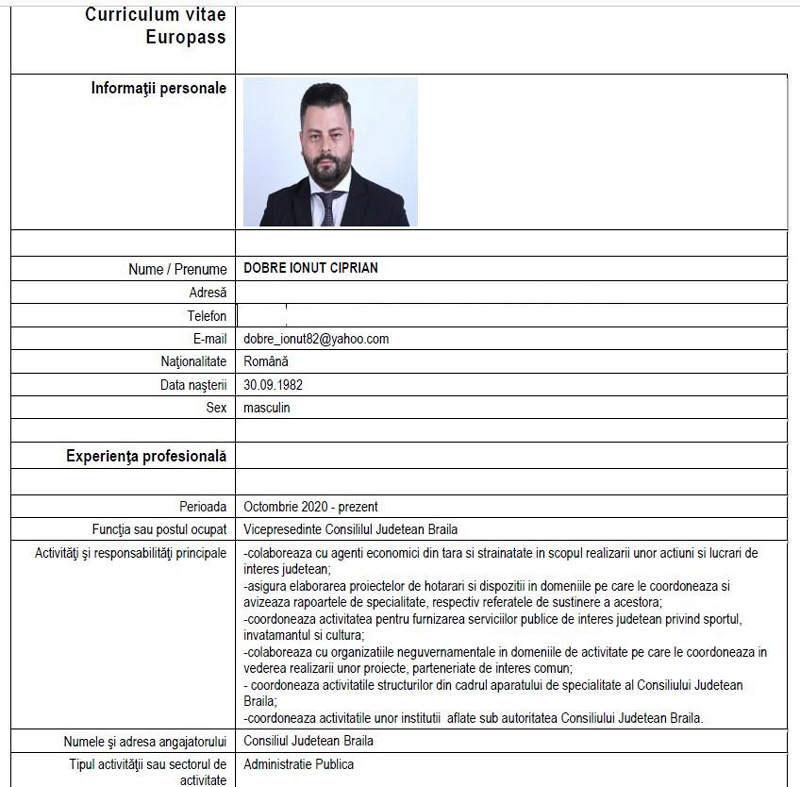 Din CV-ul vicepreședintelui Ionuț Dobre aflăm că ar avea și ceva atribuții serioase la CJ (în afară de cele foto), pe care, însă, nu le pot trata decât ca pe niște glume. La rubrica "Activități și responsabilități principale" (vezi foto), Dobre și-a trecut "colaborarea cu agenți economici din țară și străinatate în scopul realizării unor acțiuni și lucrări de interes județean". Sunt curios să văd un raport despre colaborarea acestuia cu agenții economici din țară, dar mai ales cu cei din străinătate. Cred totuși că "abilitățile foarte bune de lucru în Photoshop", trecute la capitolul "Competențe și aptitudini de utilizare a calculatorului", au fost cele definitorii care i-au asigurat funcția de vicepreședinte al CJ.