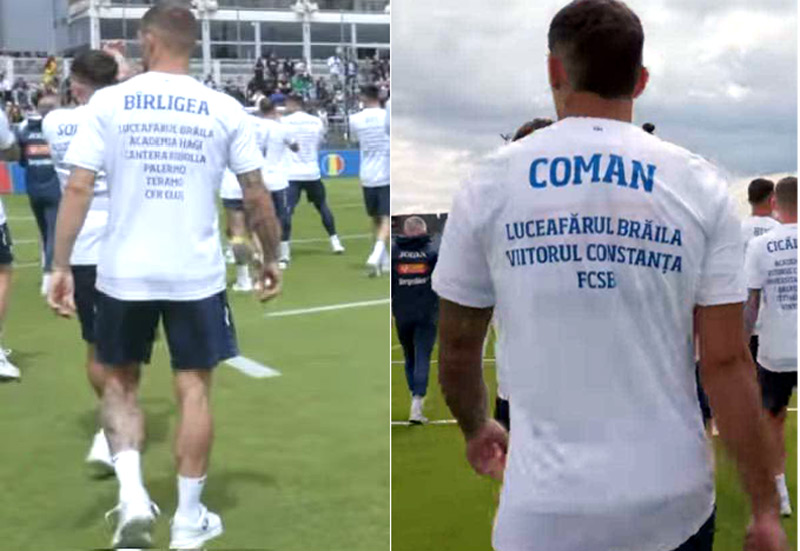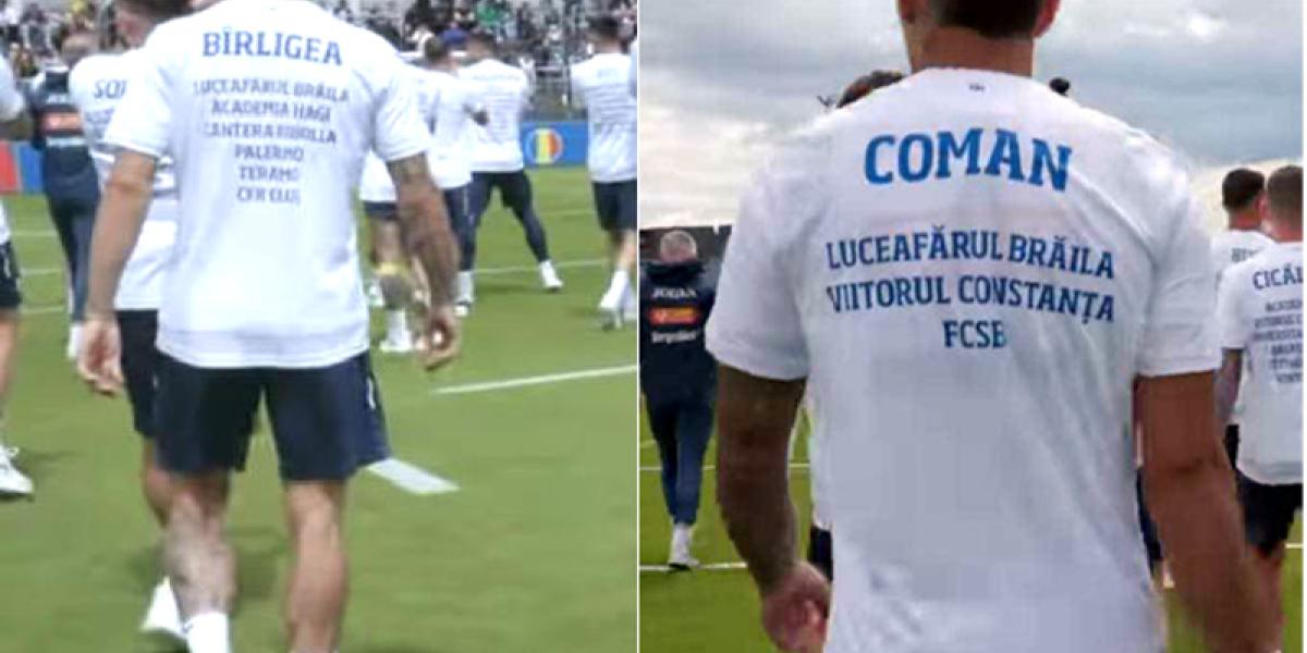 La această ședință de pregătire, la care au asistat peste 3.000 de suporteri, tricolorii au ieșit pe teren cu tricouri pe care aveau inscripționate cluburile la care au activat. Iar la Coman și Bîrligea primul club este Luceafărul Brăila.