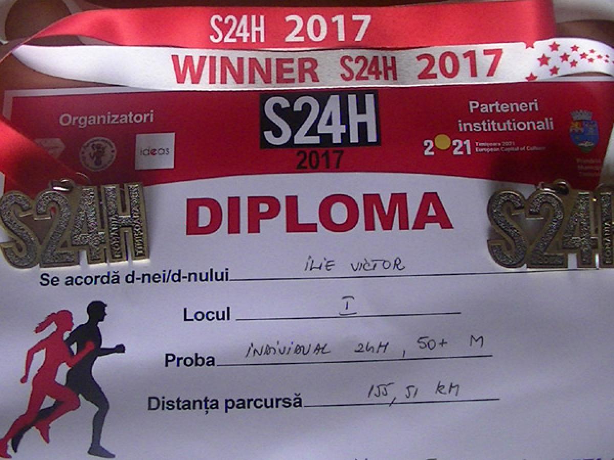 La competiţia de la Timişoara a luat startul în cursa de 24 de ore şi Victor Ilie, atletul brăilean fiind la al 240-lea maraton din cariera sa. La acest concurs Victor Ilie a parcurs 155,5 km şi s-a clasat pe locul întâi la categoria de vârstă plus 50 de ani şi pe poziţia a şasea în clasamentul general.