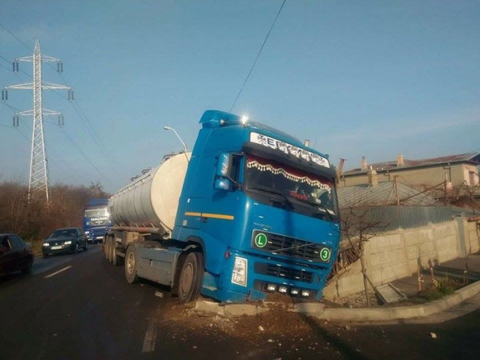 Mastodontul auto a derapat şi a ajuns pe contrasens, oprindu-se în gardul unui localnic din zonă. În "dansul" său pe şosea, TIR-ul a lovit un autoturism "Opel", două persoane ajungând la spital. Totul s-a întâmplat din cauza unei vidanje, care se afla în faţa TIR-ului şi din care curgea lichid, respectiv mizeria scoasă din canalizări. Circulaţia a fost blocată până în podul de la Şoseaua de Centură şi s-a mers pe un singur sens, preţ de câteva zeci de minute. Poliţiştii rutieri au făcut cercetare la faţa locului şi în funcţie de numărul de îngrijiri medicale pe care le vor primi răniţii vor stabili şi încadrarea juridică.