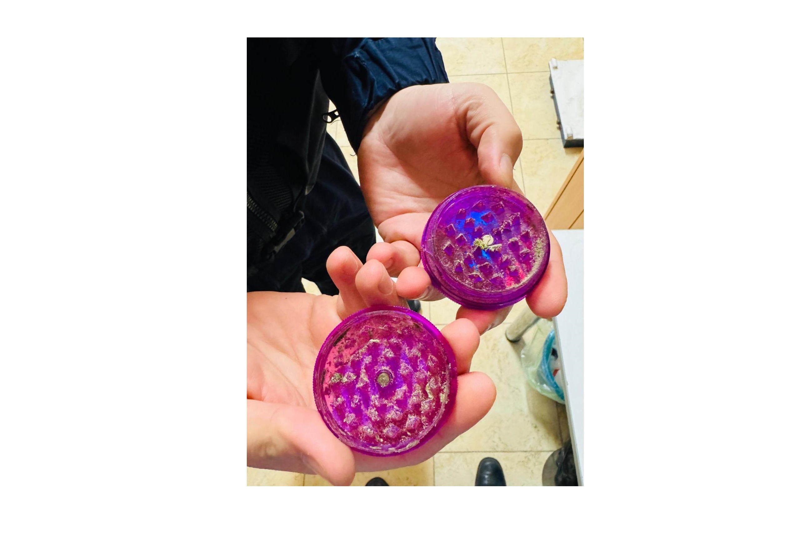 Tineri prinși cu substanțe interzise de culoare verde și un grinder folosit pentru măcinarea tutunului si ierburilor. Jandarmii i-au luat la întrebări.