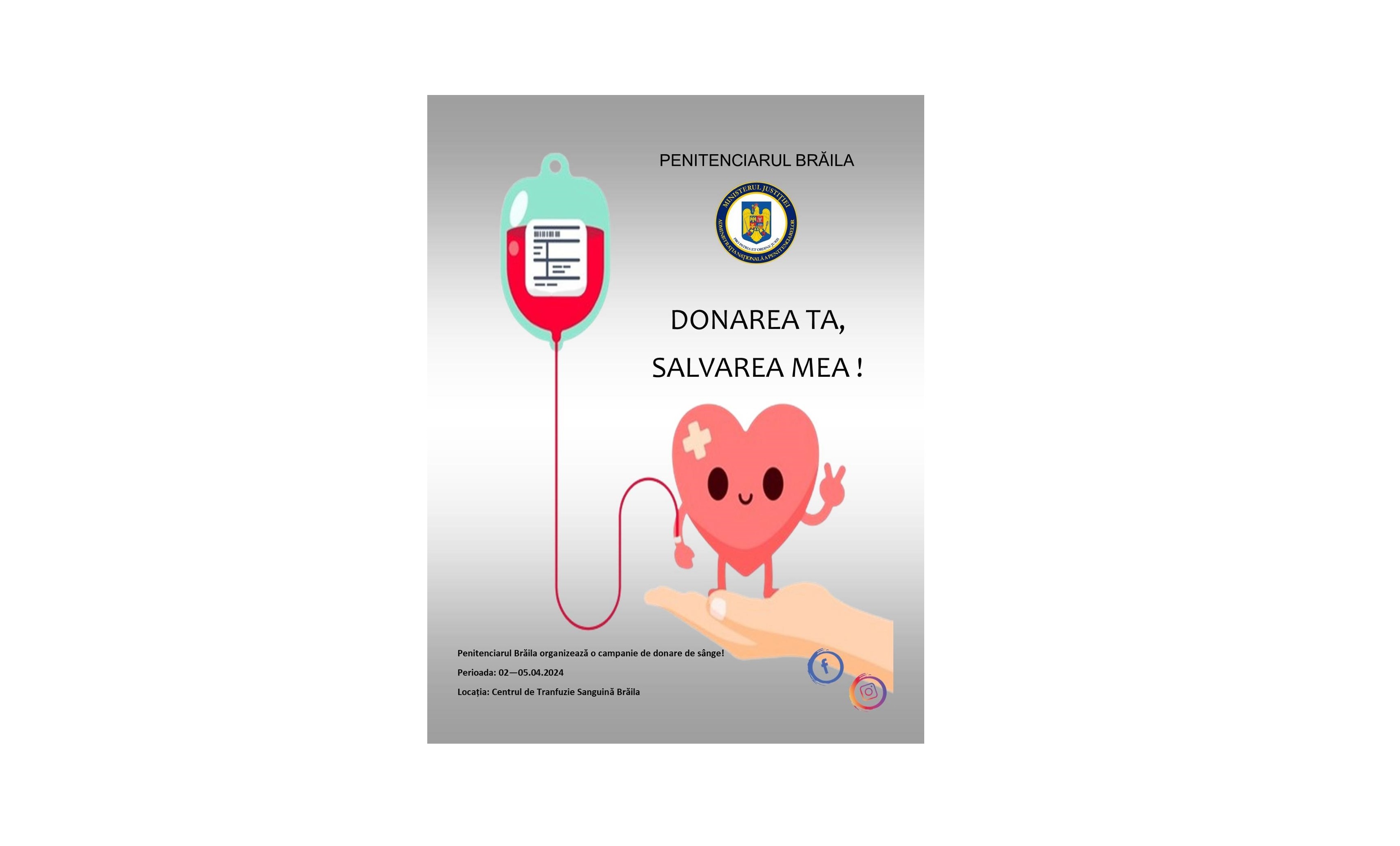* Penitenciarul Brăila continuă să se implice activ în susținerea donării voluntare și recurente de sânge