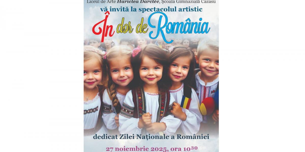 Cu prilejul Zilei de 1 Decembrie - ziua în care ne onorăm identitatea și valorile, uniți prin istorie, cultură și spirit românesc - elevii Școlii Gimnaziale „Vlaicu Vodă” Brăila, ai Liceului de Arte „Hariclea Darclee” și ai Școlii Gimnaziale din localitatea Cazasu vor susține spectacolul artistic intitulat „În dor de România”, dedicat tradițiilor și valorilor naționale perene.