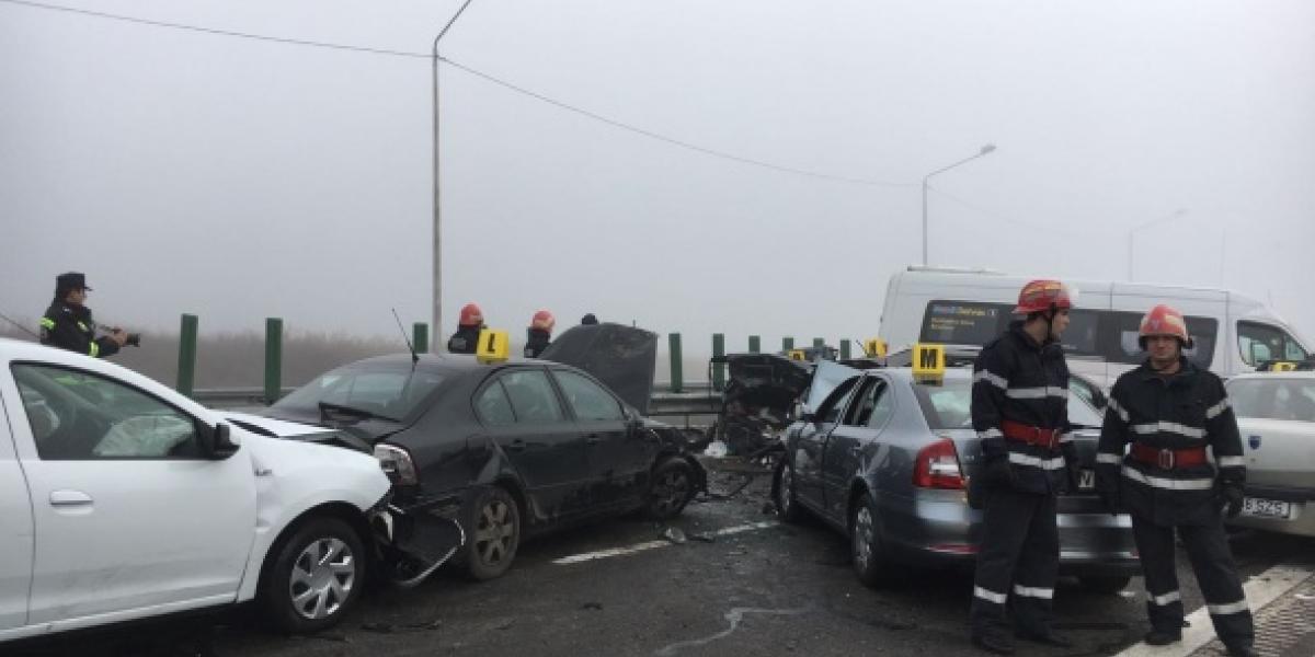 Era ceaţă densă, iar la mai puţin de un minut de la prima tamponare, alte maşini s-au ciocnit. În total, 32 de autoturisme au fost implicate.