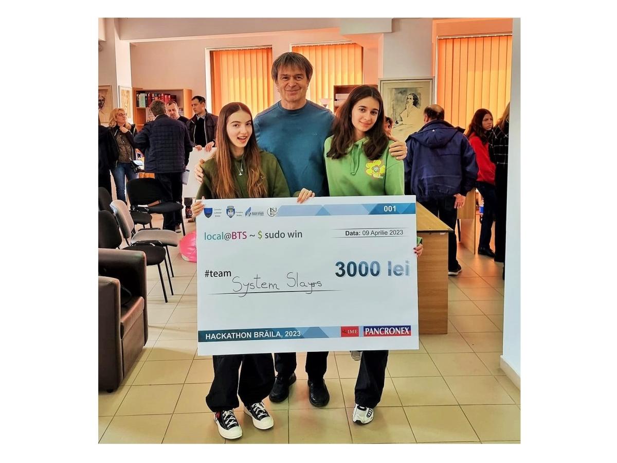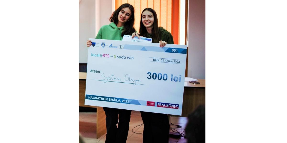 Brăila Tech Sprint 2023, primul hackathon de programare local din județul nostru, s-a încheiat cu victoria a două fete de la Colegiul Național “Gh. M. Murgoci”. Raluca Toma (18 ani) și Cristina Obreja (17 ani) au format echipa “System Slayers” și au câștigat marele premiu în valoare de peste 3.000 lei. Juriul le-a acordat acest premiu pentru proiectul “Your Healthy Meal”, find o aplicație pentru mobil de rețete gustoase și sănătoase.