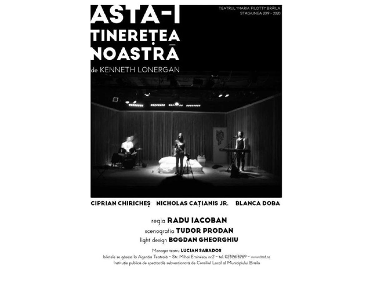 Vineri, 9 octombrie, de la ora 18.00, în Sala Mare a Teatrului „Maria Filotti” se joacă spectacolul “ASTA-I TINEREŢEA NOASTRĂ” piesă a regizorului, dramaturgului şi scenaristului american Kenneth Lonergan, regia Radu Iacoban.