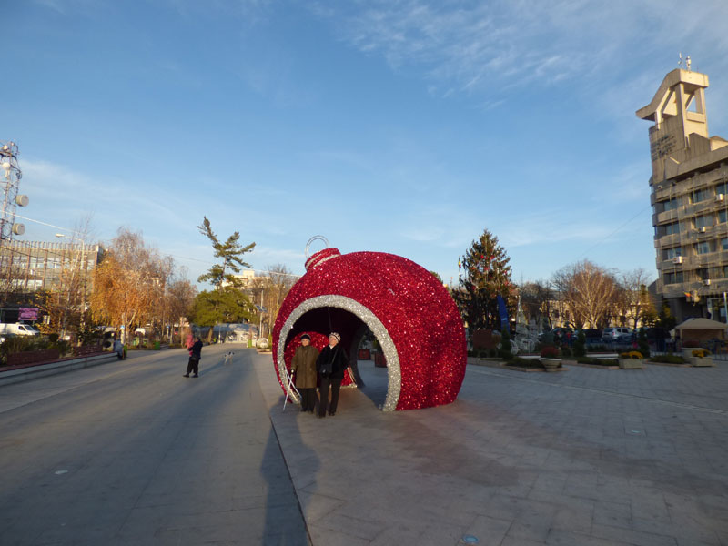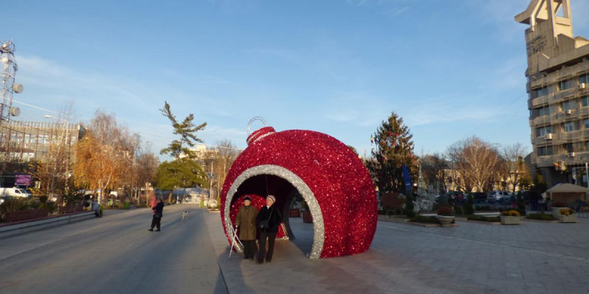 Prima surpriză este uriaşul glob de Crăciun amplasat în faţa Primăriei, care noaptea este o adevărată încântare. Globul stârneşte curiozitate şi nostalgii chiar şi pentru cei mari, pe care, pentru scurt timp, îi readuce în lumea basmelor din copilărie.