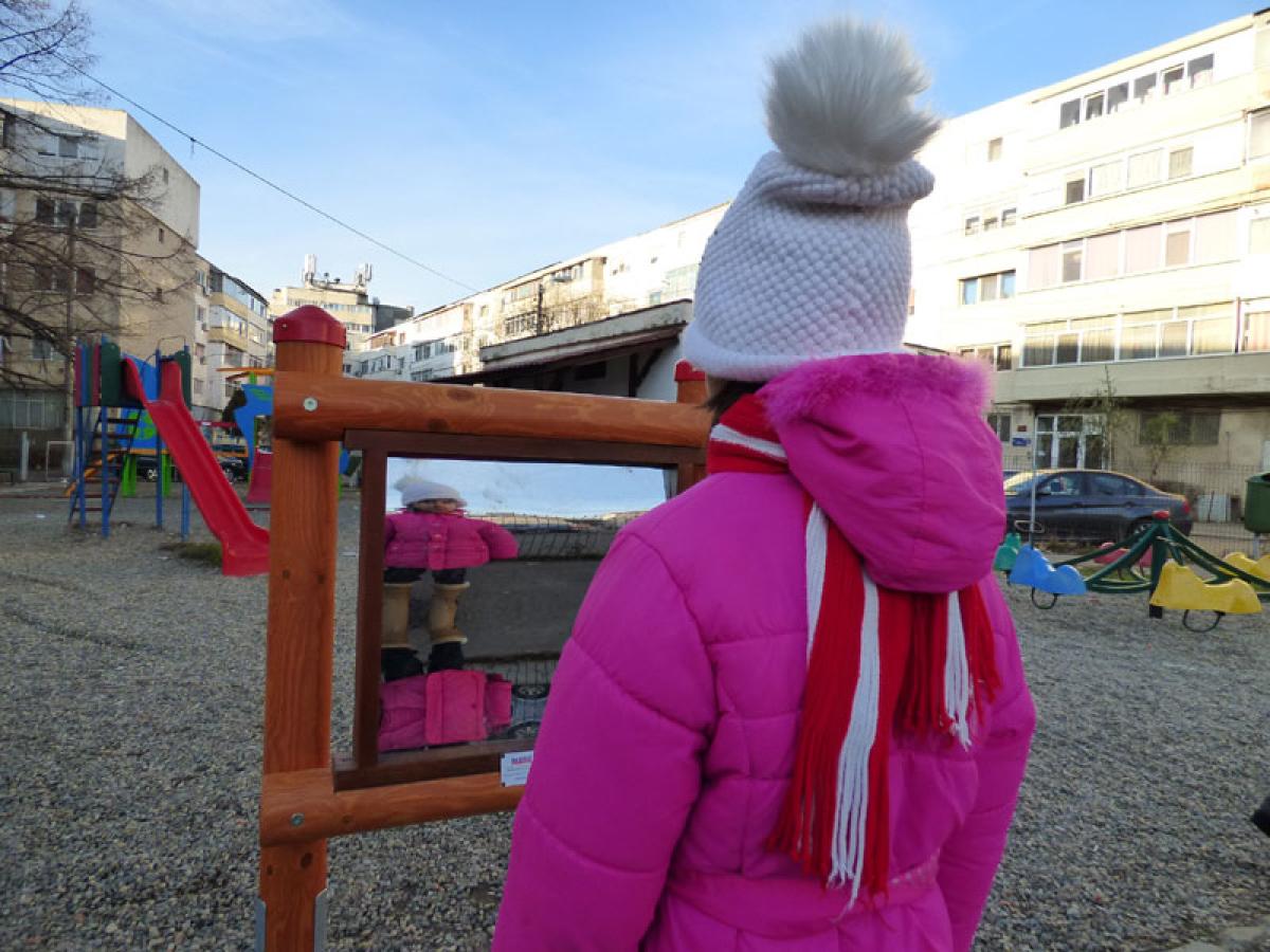 A doua surpriză, de-a dreptul inedită, este oglinda de la locul de joacă din Piaţa Vidin. Oglinjoara distorsionează în mod hazliu imaginea celor mici, iar celor mai în vârstă le aduce aminte despre anii când, de sărbători, se montau în Parcul Monument mai multe oglinzi înalte de doi metri. Atunci, era mare amuzament printre adulţii care se vedeau altfel decât în realitate... A fost, însă, odată, pe vremuri... Revenind la noutatea din Vidin, o bunică ne declara supărată că „deja oglinda este zgâriată din cauza unor copii obraznici, care dau cu picioarele în imaginea apărută. Culmea, niciunul dintre adulţii care joacă table sau şah la doi paşi nu-i atenţionează pe cei puşi pe stricat. De fapt, tablagii nu se feresc nici să înjure în faţa copiilor...”.
