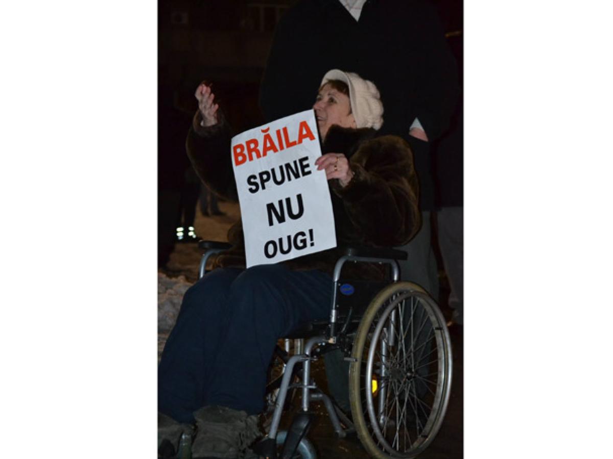 Dacă până joi, la Brăila, protestatarii au fost în jur de 700, vineri seară, lucrurile au căpătat amploare. Mai bine de 1.000 de oameni s-au adunat în faţa Palatului Administrativ începând cu ora 18:00, pentru a-şi manifesta nemulţumirile. Interesant este că protestatarii au decis să mărşăluiască pe un traseu destul de lung şi să strige “Ieşiţi din casă, dacă vă pasă!”. Astfel, pe parcurs, mai mulţi oameni s-au alăturat protestului. Însoţiţi de jandarmi, oamenii au mers pe Calea Călăraşilor, pe Bulevardul Dorobanţilor, apoi pe Strada 1 Decembrie 1918 până la Sediul PSD. Aici, coloana de manifestanţi s-a întâlnit cu o alta, care a venit dinspre Piaţa Independenţei, iar protestul a ajuns la apogeu, atât ca număr de participanţi, cât şi ca manifestare. Cei peste 1.000 de brăileni au huiduit partidul de guvernânt timp de câteva minute, moment în care şi alţi curioşi de pe Strada Republicii s-au putut alătura. Circulaţia a fost întreruptă pe Bulevardul A.I. Cuza, însă poliţiştii au reuşit să degajeze carosabilul în cele din urmă. De la sediul PSD Brăila coloana a pornit înapoi spre Piaţa Independenţei, pe Bulevardul Cuza. Trebuie subliniat că, în dreptul Palatului de Justiţiei, protestatarii au aplaudat în semn de respect pentru procurori şi judecători . În cele din urmă, coloana s-a oprit din nou în faţa Primăriei, unde de asemenea se adunaseră câţiva brăileni în tot acest timp.