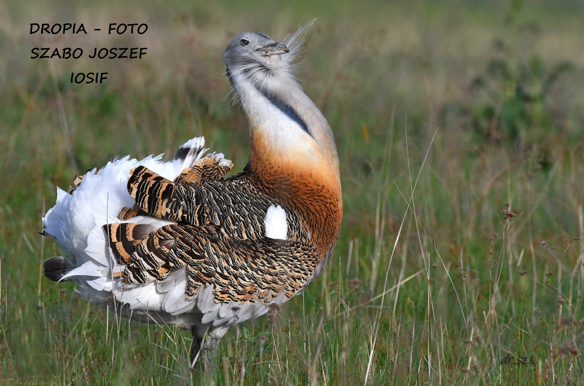 Dropia (Otis tarda), cea mai ,,grea” pasăre din Europa (masculul atingând 16 kg), este o specie caracteristică zonelor stepice, care de-a lungul timpului și-a adaptat preferințele de habitat pentru zonele agricole. Cu toate acestea, datorită presiunii antropice ridicate (pierderea și fragmentarea habitatului specific, mecanizarea și intensificarea agriculturii și nu în ultimul rând vânătoarea) arealul european al speciei s-a fragmentat și redus considerabil în secolul XX. Deși până la jumătatea secolului trecut dropia era o pasăre caracteristică pentru câmpiile României, cuibărind la sud de Carpați, în Câmpia de Vest, în Banat și în Dobrogea, astăzi, cu excepția câtorva semnalări sporadice, efectivele speciei pe teritoriul României sunt incerte. Deși declarată Monument al Naturii, populațiile odinioară stabile din Bărăgan și Dobrogea se pare că s-au stins.