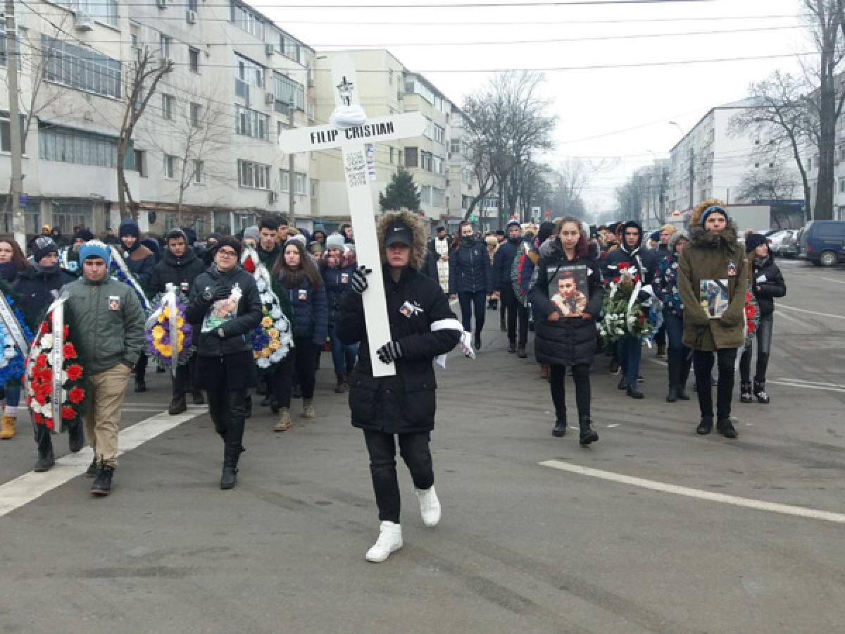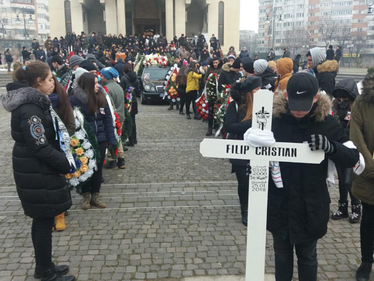 • Cristian Filip, adolescentul pentru care Brăila a făcut scut în faţa cancerului, “eroul” campaniilor umanitare “Citostatice pentru Cristi”, “#hailasuc” şi “Împreună pentru Cristi!”, a fost înmormântat, duminică după-amiază • slujba religioasă a fost oficiată de un sobor de preoţi, la Catedrala “Naşterea Domnului” • Cristi a fost condus pe ultimul său drum de sute de oameni, din municipiu şi judeţ • copiii şi adolescenţii au purtat pe braţe zecile de coroane şi au deschis cortegiul funerar • Cristi îşi va dormi somnul de veci în Cimitirul “Sfinţii Împăraţi Constantin şi Elena”, din municipiu, fiind ultima sa dorinţă înainte de a părăsi această lume • a lăsat în urmă părinţii secătuiţi de puteri, prieteni şi colegi îndureraţi, străini întristaţi de cruntul destin şi o comunitate unită în faţa luptei pentru fiecare secundă din viaţa unui adolescent