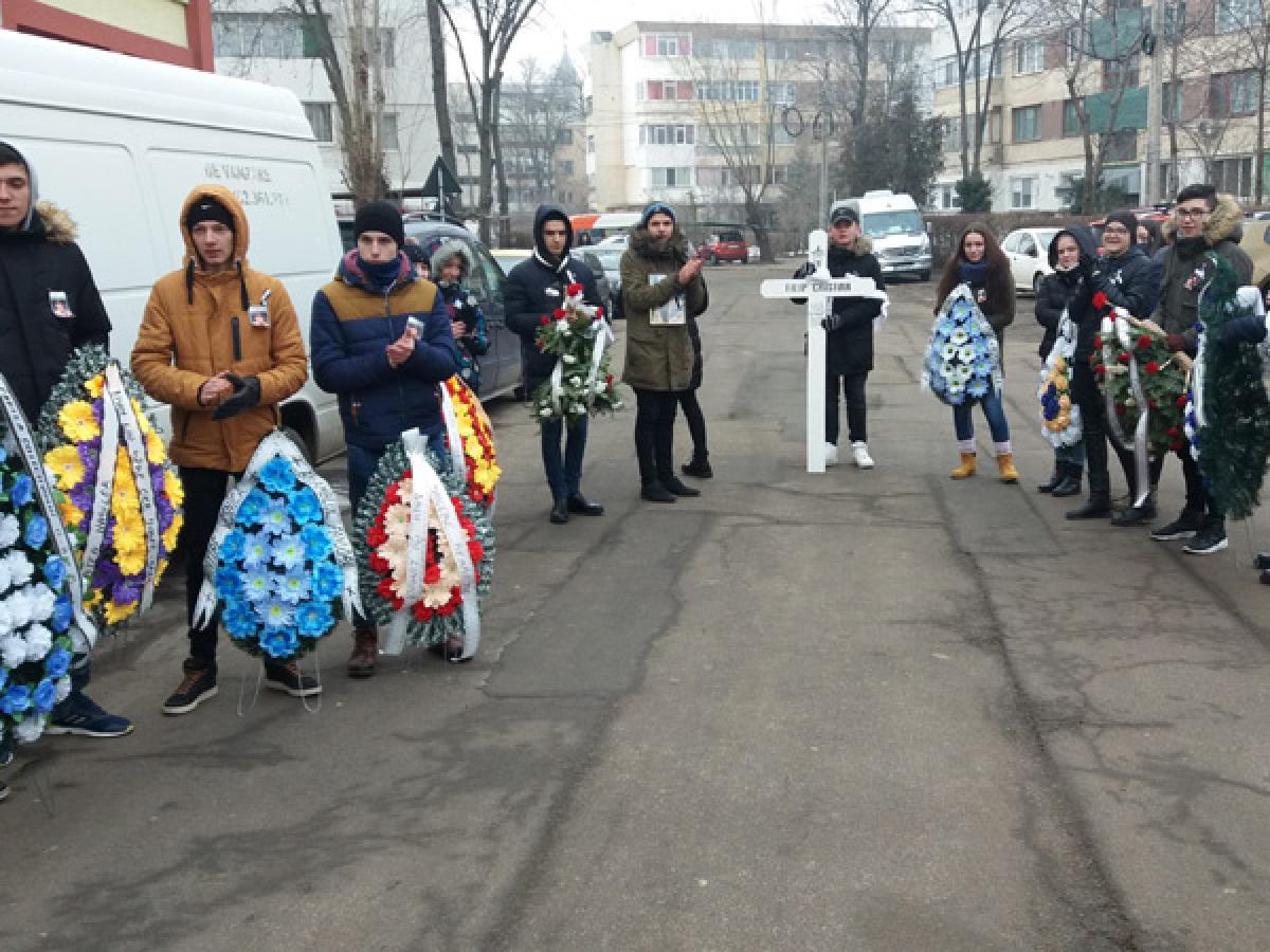 Cortegiul s-a oprit preţ de câteva momente la Liceul Pedagogic, unde fusese admis Cristian Filip, în 2015, primul pe listă, la specializarea Ştiinţele naturii. Nu a apucat să urmeze nici măcar o oră de curs, pentru că i s-a făcut rău chiar în prima zi din anul şcolar 2015-2016, luând apoi drumul spitalelor.