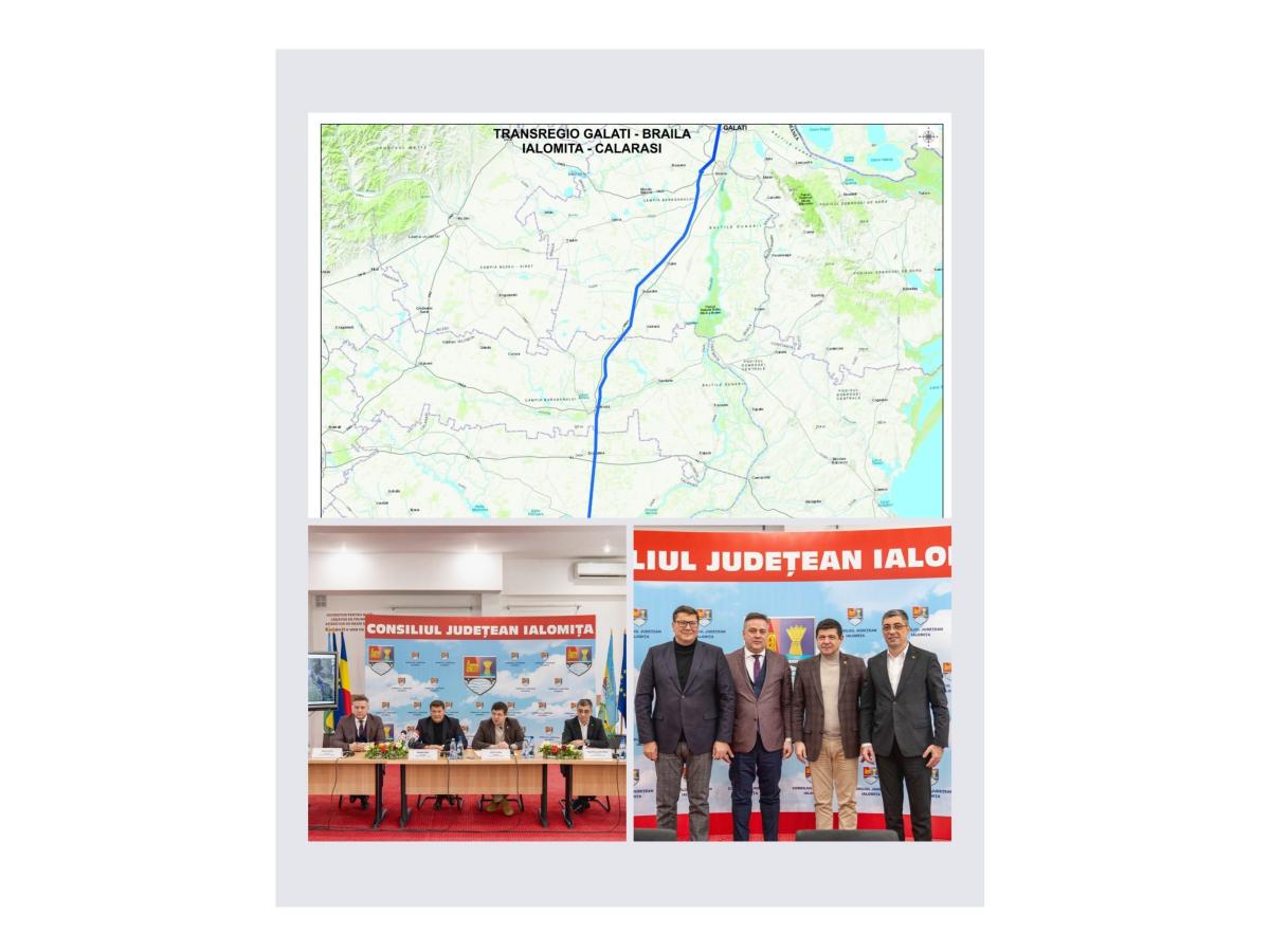 * ordinul de începere a studiului de fezabilitate pentru drumul TransRegio Galați - Brăila - Slobozia - Drajna - Chiciu - A2 a fost semnat, ieri, la Ialomița, în cadrul unui eveniment la care au participat șefii de CJ din județele Galați, Brăila, Călărași și Ialomița * lungimea drumului va fi de 142 km, iar valoarea investiției se ridică la circa 500 milioane de euro