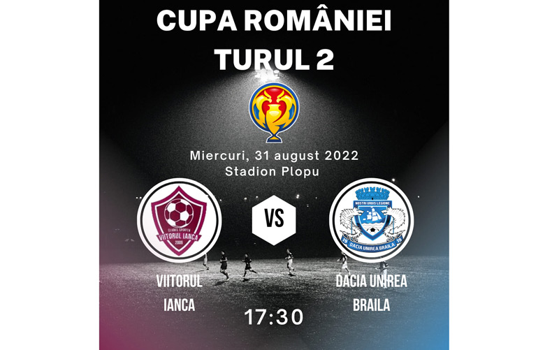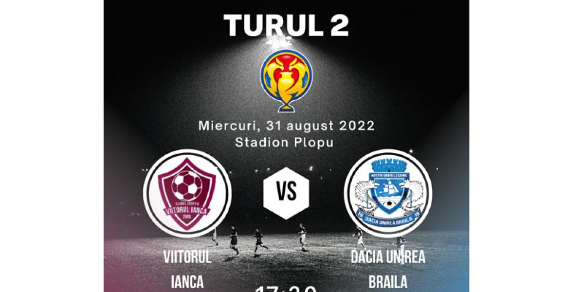 Viitorul Ianca va juca astăzi de la ora 17.30, în etapa a 2-a națională a Cupei României la fotbal, în compania Daciei Unirea.