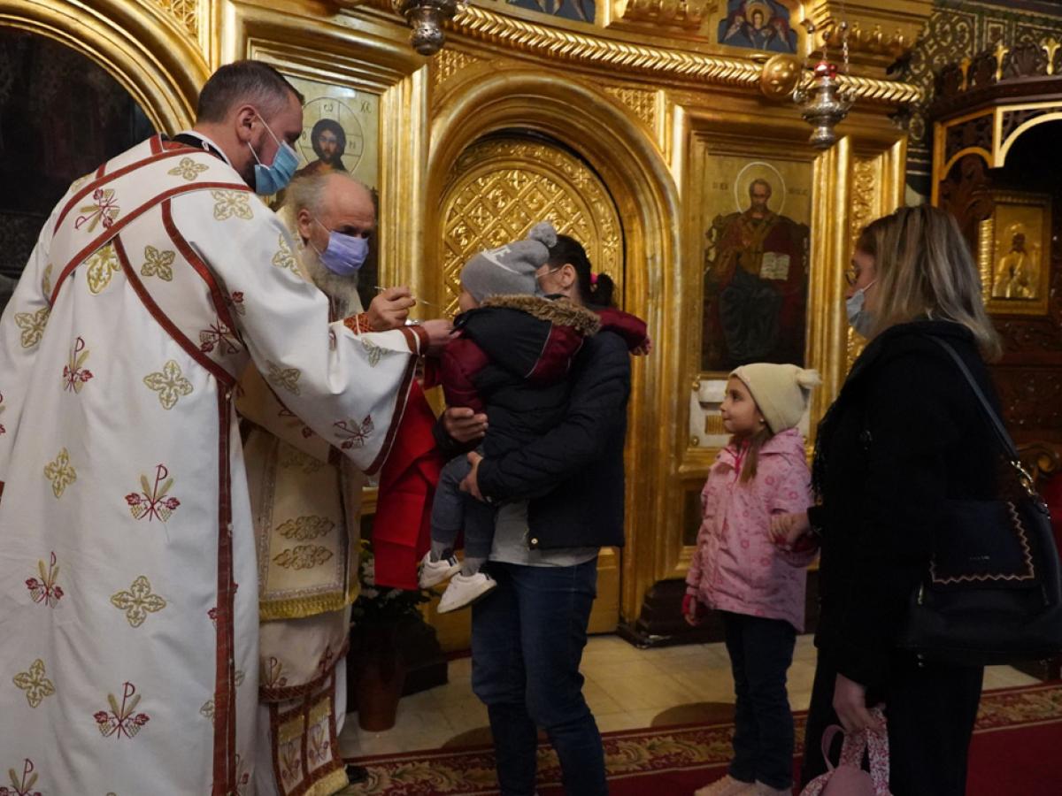La momentul liturgic cuvenit, copiii şi credincioşii pregătiţi prin post, cuget curat şi rugăciune, aşa cum cere credinţa strămoşească, au fost împărtăşiţi cu Trupul şi Sângele Domnului.