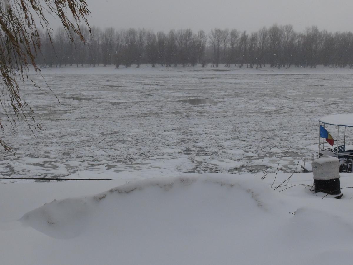 Brăila se află încă sub o atenţionare meteo de cod galben de ger. Frigul siberian îngreunează traficul pe Dunăre, încă de azi dimineaţă fluviul fiind plin de sloiuri.